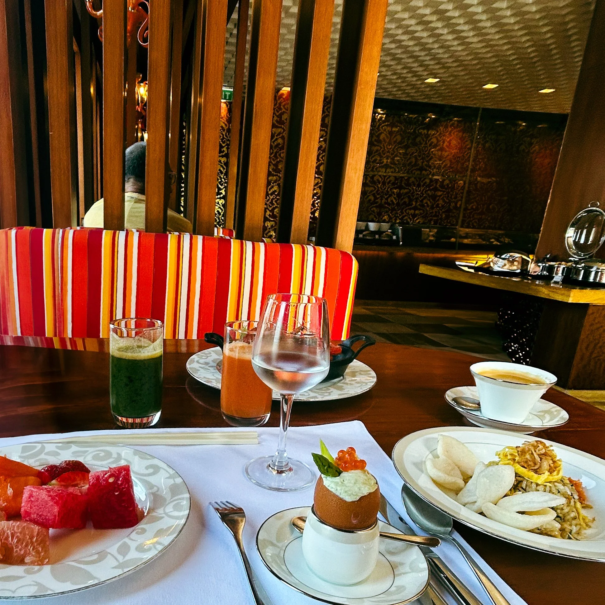 The Egg Nouvelle, Fresh Fruit & Pressed Juices and Crab Fried Rice at Boneka at the St. Regis Bali