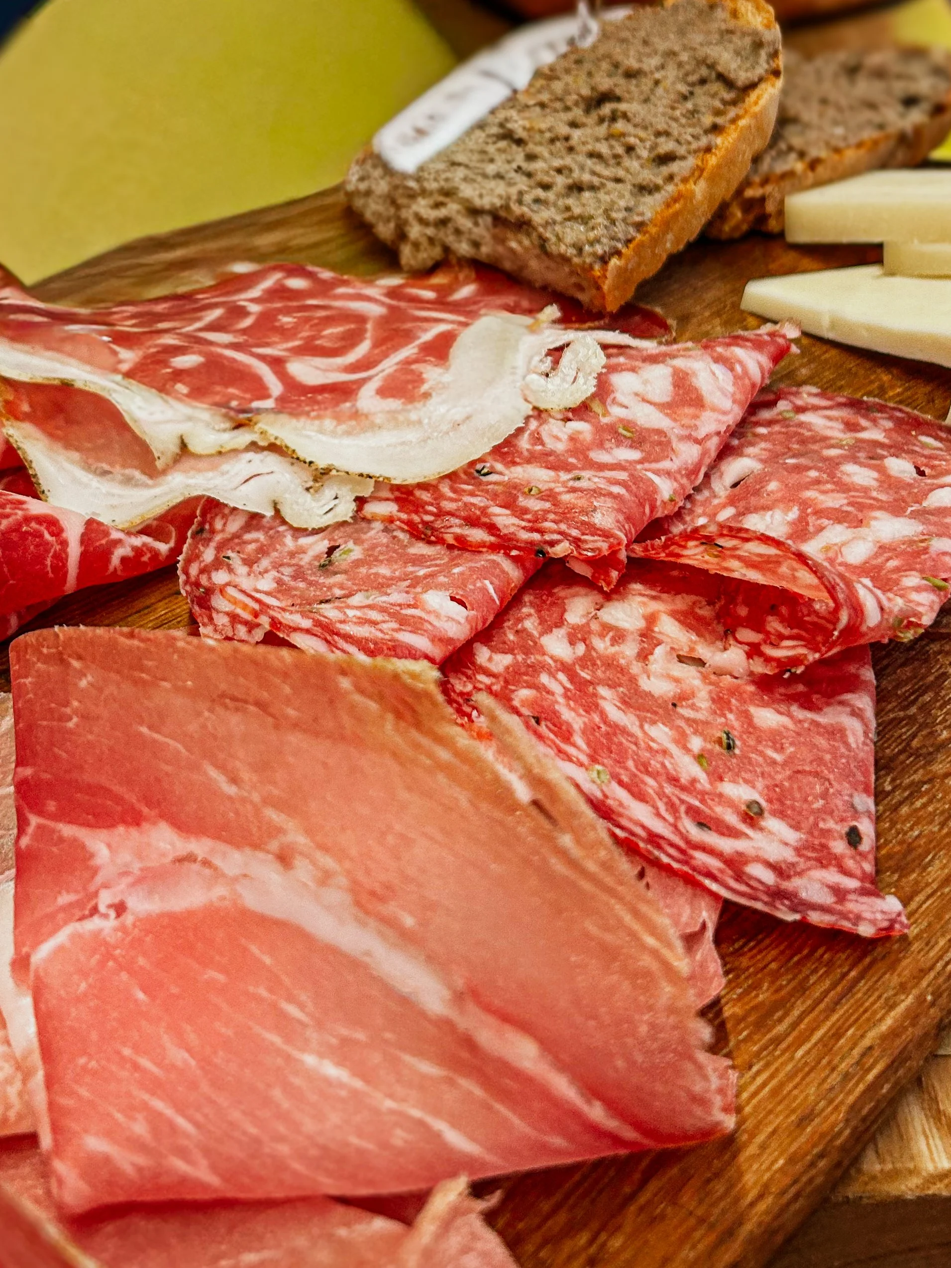 Not wanting to leave the peace and calm behind, I stopped at Bottega Vera for one more glass of wine. Surrounded by towering shelves stocked with bottles of Italian wine, I sipped on a Barbera from a shaky high-top table. I recalled then as I recall now how much joy I always seem to find from a little gourmet wine shop full of local sweet and savory goodies. One glass of wine turned into a second. I tried my best to slow time down sipping and nibbling off a charcuterie board teeming with meats, fresh baked bread and cheese.