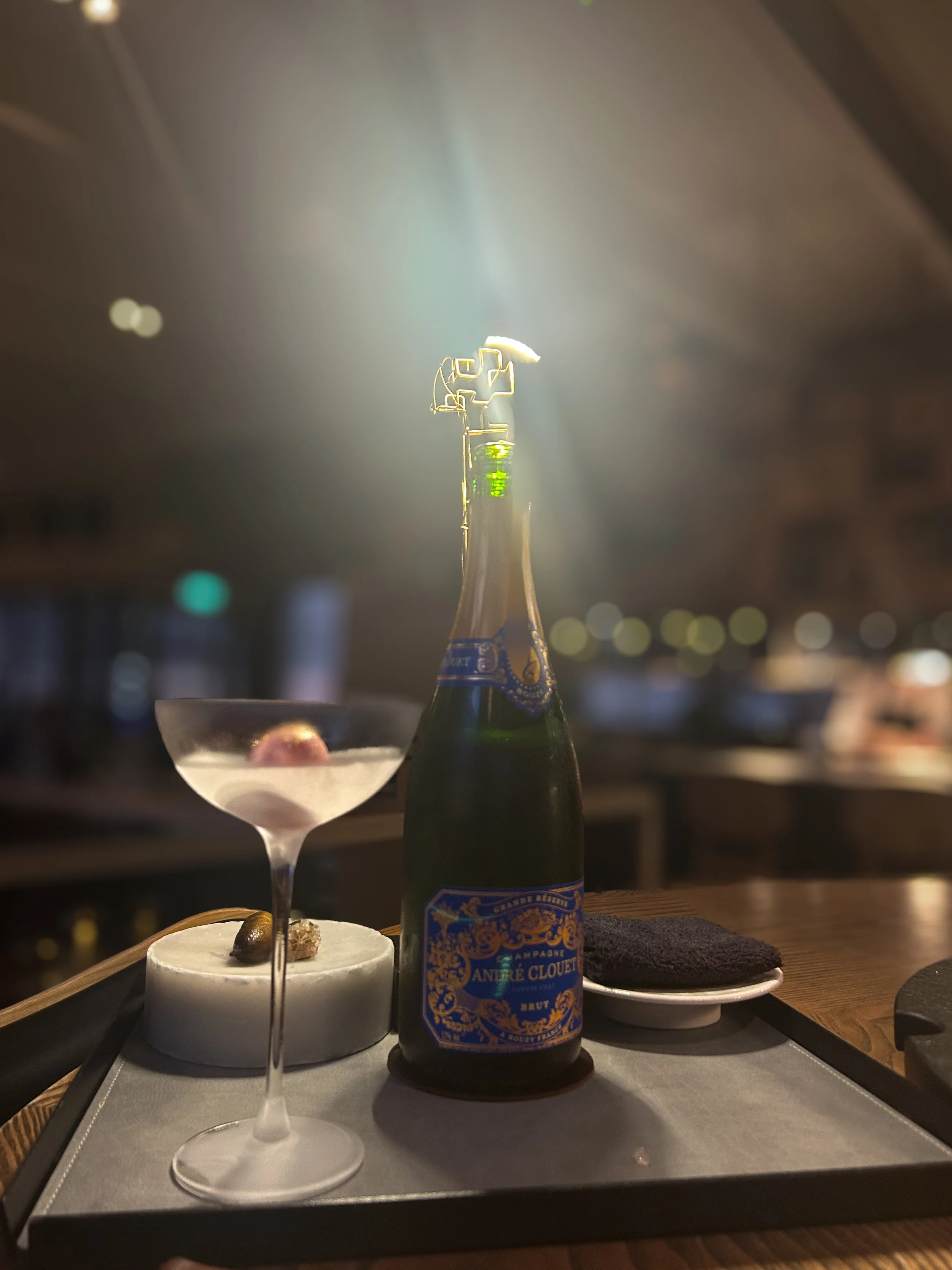 The R75 Rhubarb Sorbet, Lime Caviar & Champagne palate cleanser at Noa Chef’s Hall in Tallinn, Estonia