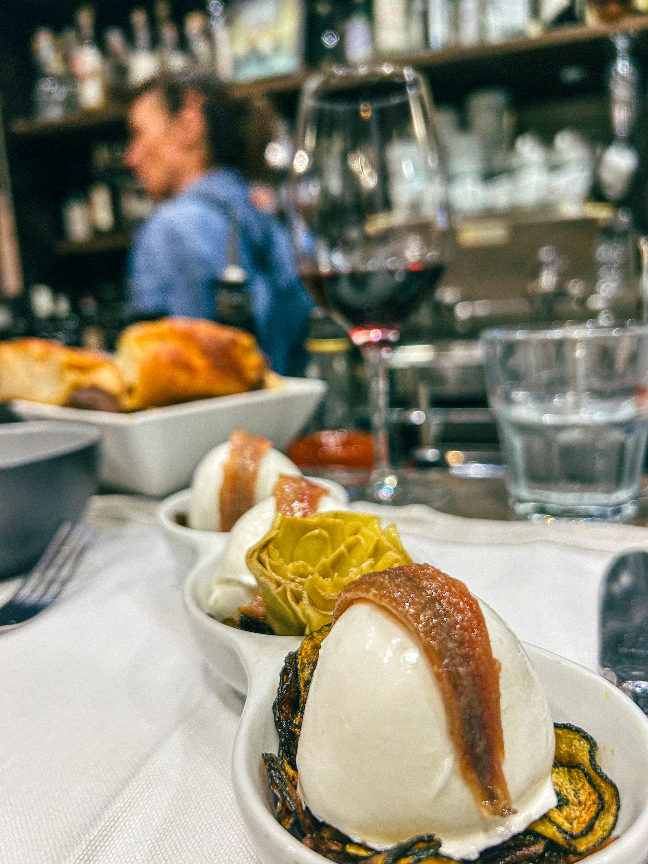 This last time, the server behind the counter where I love to sit, made this meal my most memorable and special. She was fun, sassy and full of worthy and no-nonsense recommendations. I started with the perfect glass of red trying as hard as I could with every sip to absorb the sights, smells and sounds flooding the narrow, bustling room.