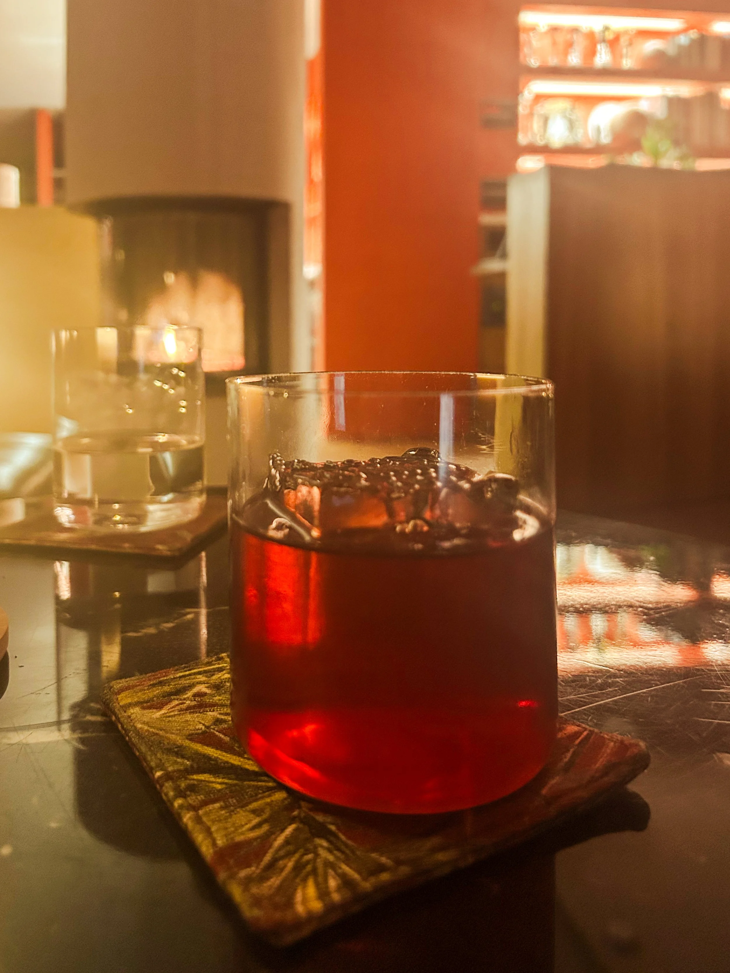 A Negroni nightcap from the lobby of Hiša Franko restaurant